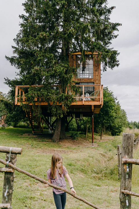 Who hasn’t dreamt of a treehouse? And if it’s superbly designed and offers full comfort – just head to the forest! Dr Świerk in Gierzwałd, Mazury, offers a 10 sqm base with a living area, kitchenette, bathroom with full sanitary facilities, and a cozy loft bedroom. Another 10 sqm await on the spacious terrace, where you can spend time under the open sky. All surrounded by towering spruces! In short – deluxe relaxation in full swing, with camping spirit and the closest possible contact with nature.