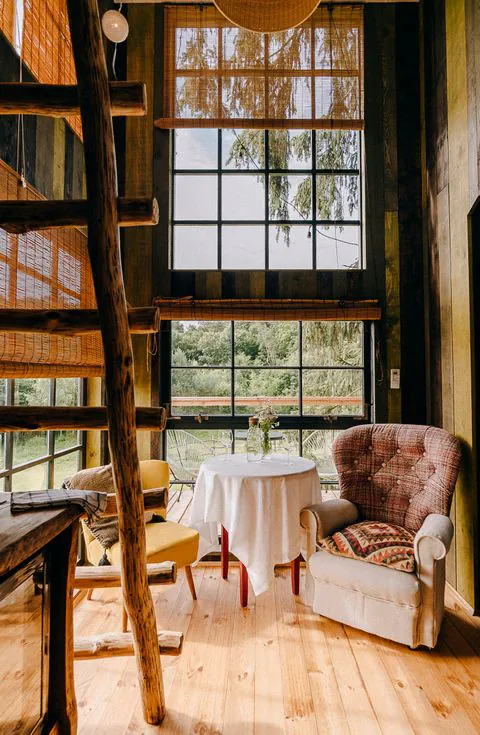In Wierzbno, Mazovia, beautiful cottages with curtains instead of traditional doors, comfortable beds, and terraces await. Mountain vibes are transported to the heart of Poland and enriched with glamour! Showers are located a few steps away from the cottages, and there’s a traditional backyard kitchen where you can drop by for tea. Breakfasts are served in beautiful baskets. The surroundings are also noteworthy – spring smells of jasmine, lilies of the valley, and elderflowers, while summer brings scents of harvest, strawberries, and ripe mirabelles. Nearby, there’s an orchard, vegetable garden, chicken coop, and you can relax on loungers and hammocks.