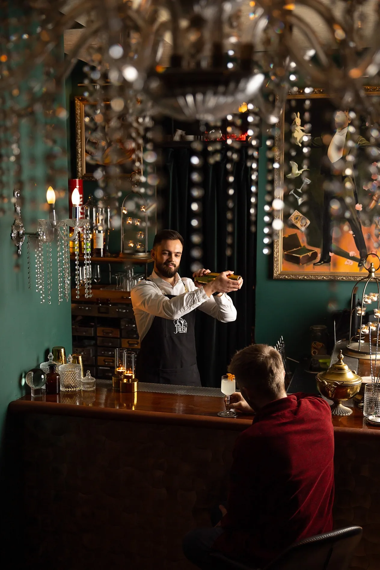 Signature vibe: Speakeasy mystique meets master mixology.
