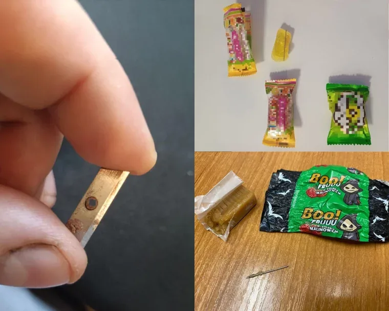 Parents across Poland are sounding the alarm after horrifying discoveries in Halloween candy — including needles, nails, and even razor blades hidden inside children’s treats.