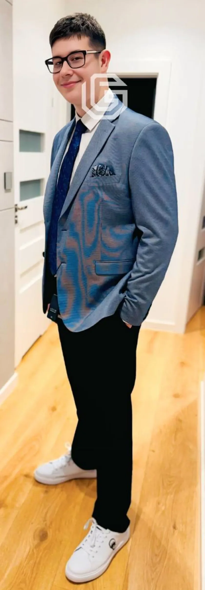 Szymon is approximately 198 cm tall, with short dark hair and brown eyes. He wears prescription glasses with dark frames. At the time of his disappearance, he was wearing a light grey hoodie with a blue Big Star logo, grey loose-fit jeans, and blue Nike sneakers. He was also carrying a black school backpack.