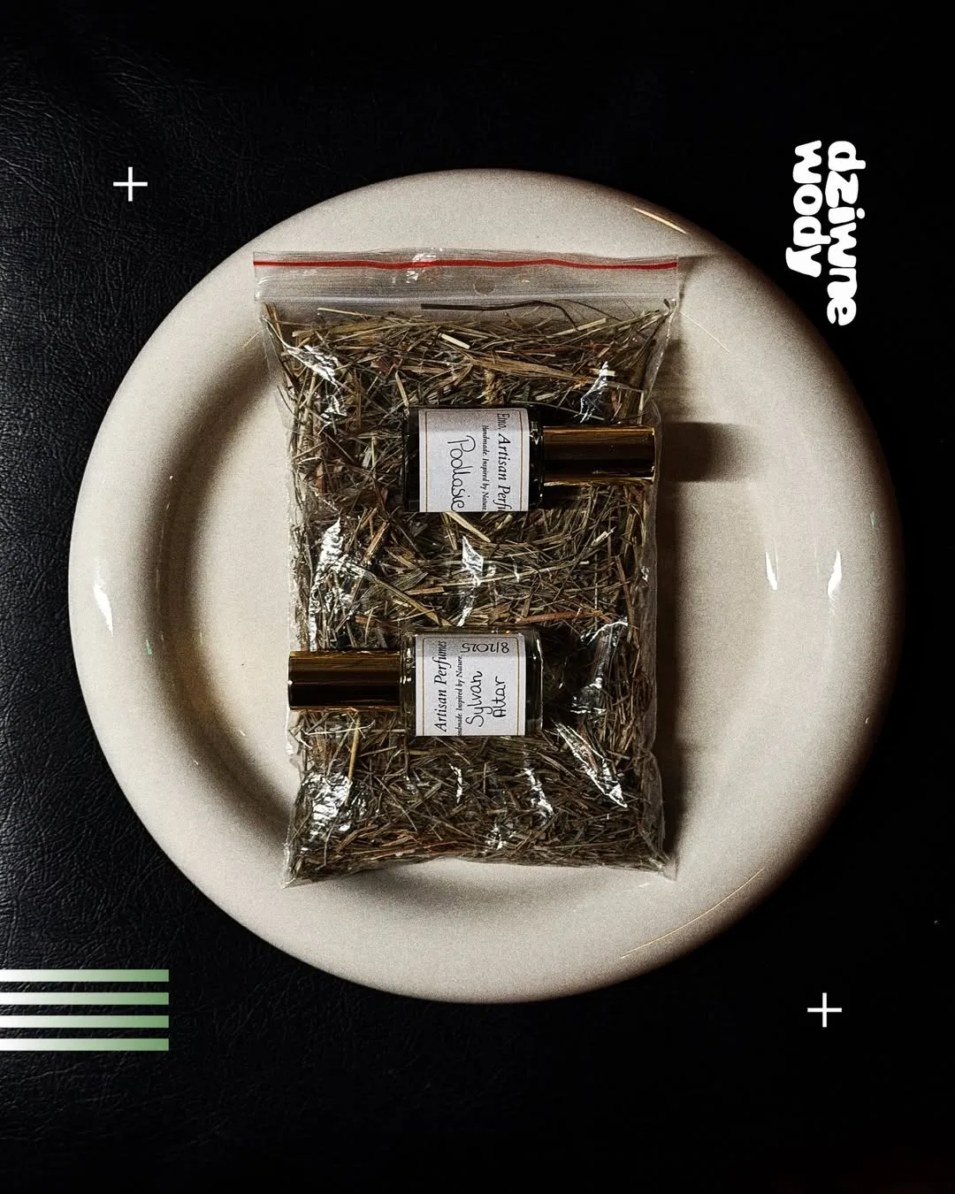 Scents inspired by early 2000s Japanese fashion chaos. Bottles that smell like the Polish countryside at night — wet hay, wet grass, cold air, cucumbers sweating in the dark. Fragrances that calm you. Others that split the room in half. Some that feel like conceptual art you wear on your neck.