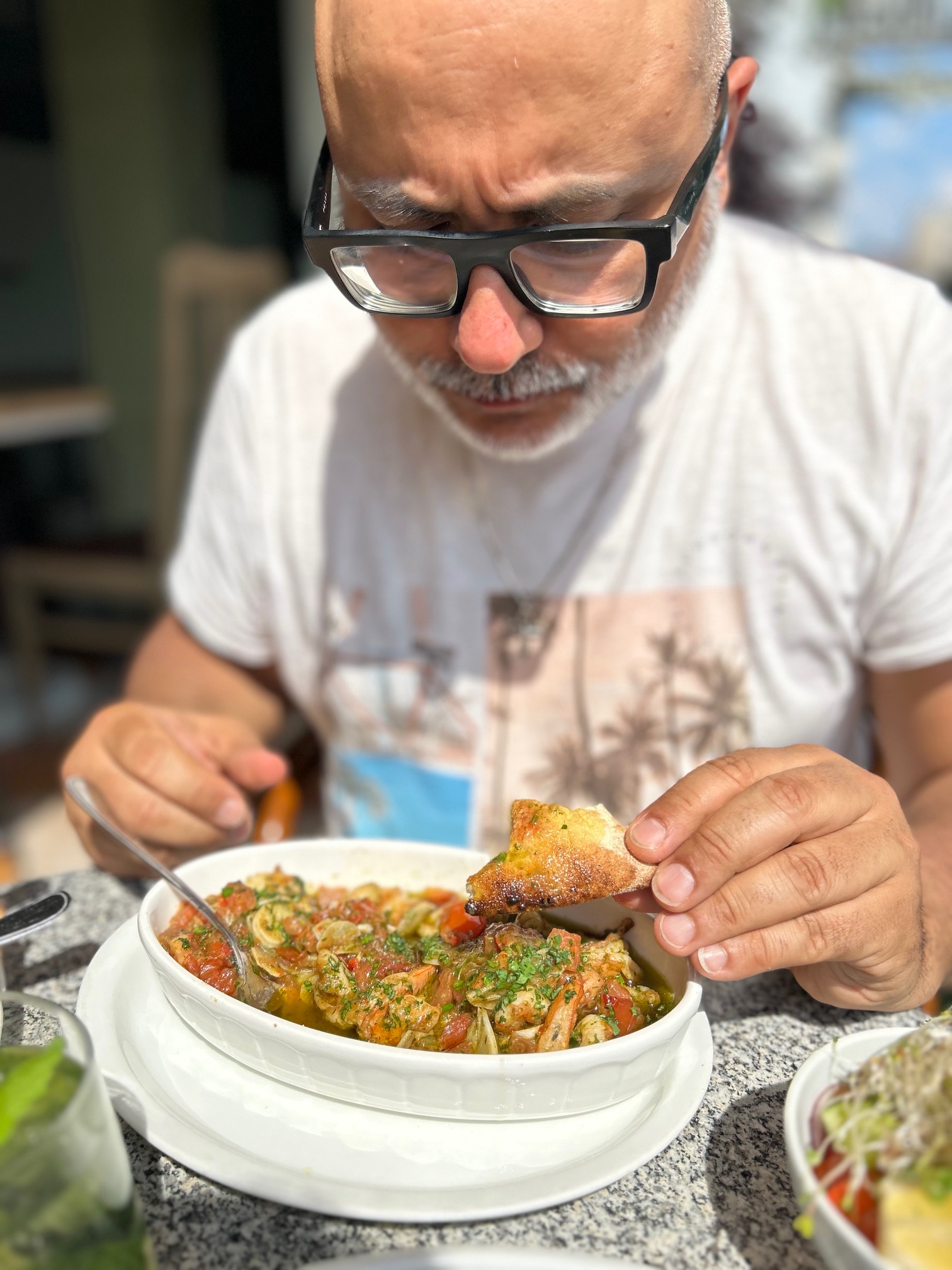 However, the pièce de résistance was undeniably Tomasz’s Scampi Aglio, Olio e Peperoncino. This signature dish showcased shrimp delicately sautéed in olive oil with tomatoes, garlic, peppers, and herbs. Each bite was a revelation, a perfect embodiment of the Mediterranean culinary experience. The best shrimp dish we have ever tasted!!!