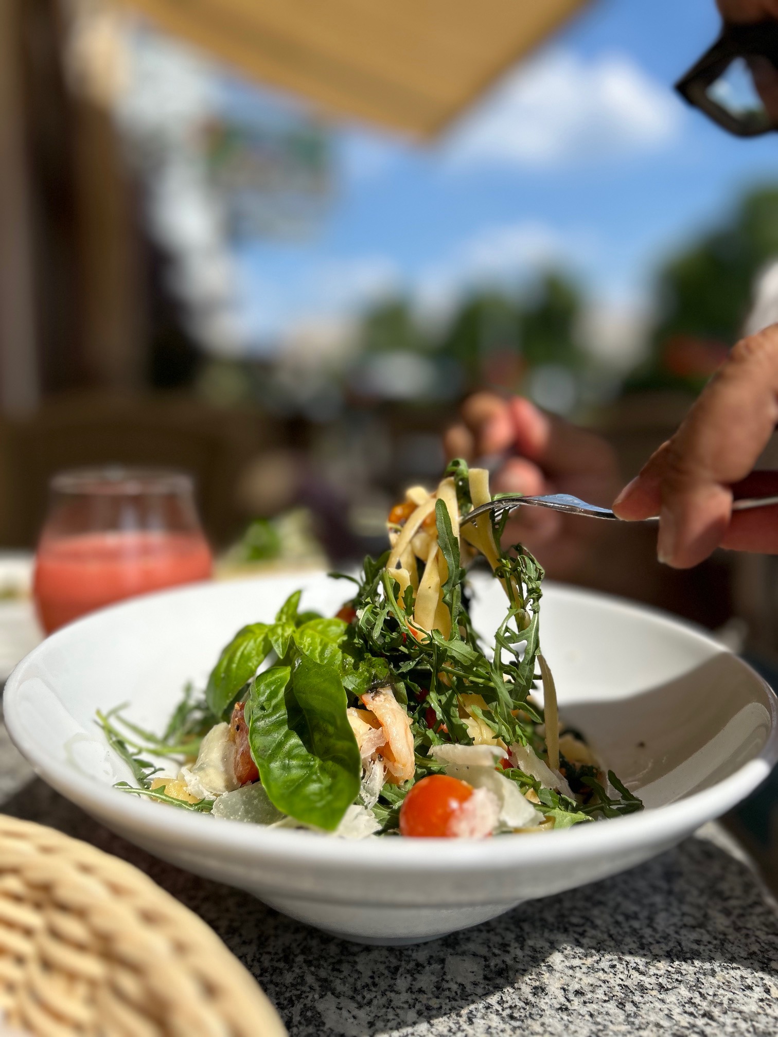 Next, we savored the Tagliatelle Chef, a tantalizing pasta dish again featuring shrimp and with tomatoes, arugula, garlic, olives, and herbs. The flavors danced on our palate, perfectly complementing the tender shrimp with the freshness of the tomatoes and aromatic garlic.